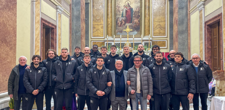 Il presidente Farinaro, coach Cagnazzo, i dirigenti e l’intera prima squadra della Paperdi Juvecaserta 2021 hanno partecipato questa mattina alla tradizionale cerimonia della Festa dell’Immacolata, celebrata nel Santuario dei Salesiani di via Don Bosco. Accolti dal direttore, don Antonio D’Angelo, i bianconeri hanno assistito alla rielaborazione teatrale della nascita dell’Oratorio di San Giovanni Bosco ed al successivo intervento dello stesso Direttore dell’Opera Salesiani di Caserta.