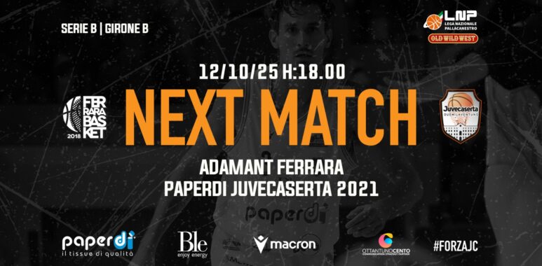 La Paperdi Juvecaserta 2021 torna in campo domani, domenica 12 ottobre, per affrontare, in trasferta, l’Adamant Ferrara nella quarta giornata del campionato di Serie B Nazionale Old Wild West. La gara si disputerà alla Bondi Arena con inizio alle ore 18:00.