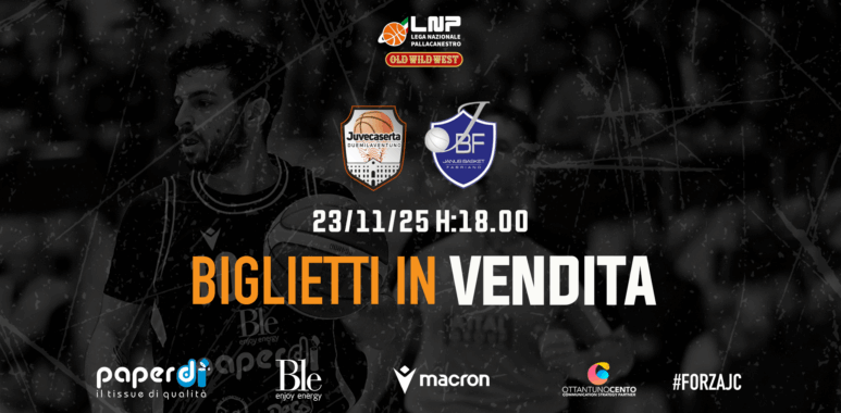 Saranno in vendita dalle ore 11.00 di domani, martedì 18 novembre, i biglietti per la gara che la Paperdi Juvecaserta disputerà al palaPiccolo domenica 23 con la Ristopro Fabriano (ore 18:00), valida per la tredicesima giornata di andata del campionato di serie B nazionale.