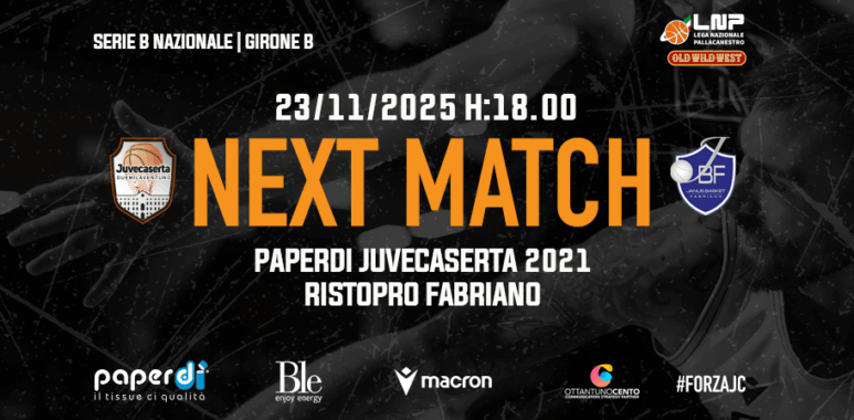 Dopo la doppia trasferta in Toscana, la Paperdi Juvecaserta torna al palaPiccolo e domani sera alle 18.00 affronta la Ristopro Fabriano nel tredicesimo turno di andata del campionato di serie B nazionale. La squadra marchigiana è reduce dalla sconfitta interna di misura subita nel derby con il Loreto Pesaro e, nonostante i soli quattro punti in classifica, in questo avvio di stagione ha sempre lottato alla pari con tutti gli avversari. Ha una media punti di 74,4 e tira con il 50% da due ed il 35% da tre.