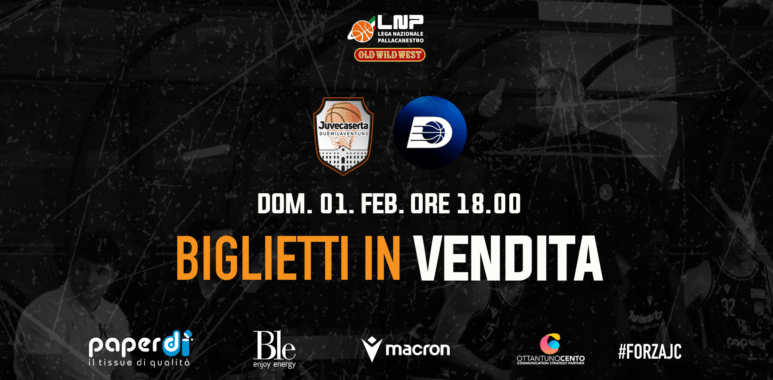 Saranno in vendita dalle ore 11.00 di domani, martedì 27 gennaio, i biglietti per la gara che la Paperdi Juvecaserta disputerà al palaPiccolo domenica 01 febbraio con il Consorzio Leonardo Dany Quarrata (ore 18:00), valida per la quinta giornata di ritorno del campionato di serie B nazionale.