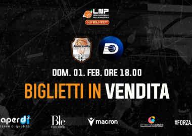 Saranno in vendita dalle ore 11.00 di domani, martedì 27 gennaio, i biglietti per la gara che la Paperdi Juvecaserta disputerà al palaPiccolo domenica...